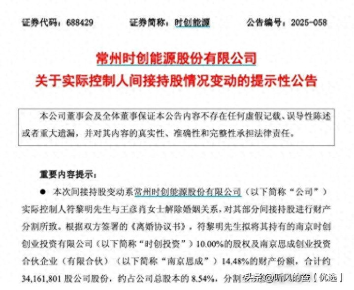 这件事表面是夫妻分割财产,实际上复杂得多,时创能源的股权结构不是直接持有股份,而是通过几层公司和合伙企业绕来绕去,这种安排在光伏行业很常见,主要为了节省税款和操作方便,这次分割其实是将原来绑在一起的股权节点拆开,与感情无关,纯粹是法律层面的资产调整。